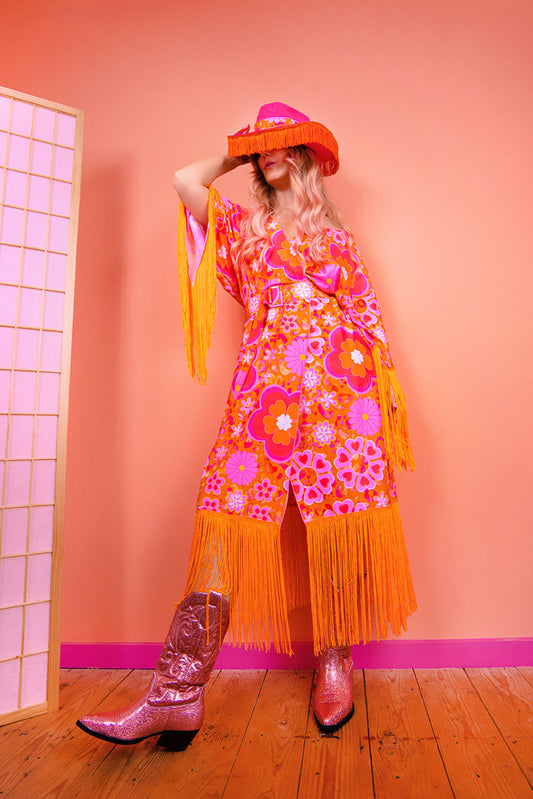 UK Onesize - Printed Fringed Festival Kimono | Shard